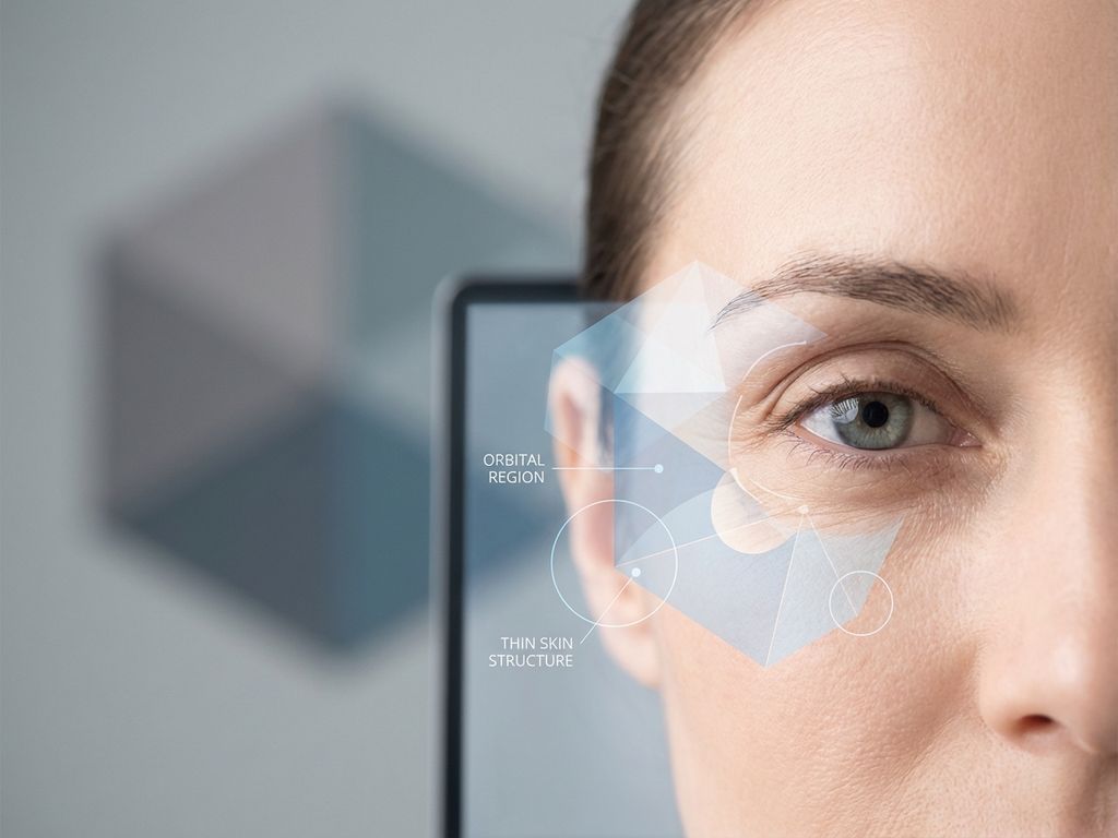 Die Haut rund um die Augen ist anatomisch einzigartig dünn – mit nur 0,5 Millimetern Dicke im Vergleich zu 2 Millimetern an anderen Gesichtsstellen. Diese dünne Struktur enthält weniger Kollagen und Elastin, die für Festigkeit und Elastizität verantwortlich sind.