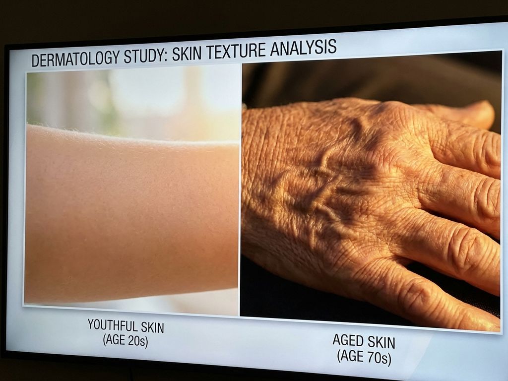 Hautvergleich zeigt glatte junge Haut links und gealterte Haut mit Falten rechts in medizinischer Detailaufnahme