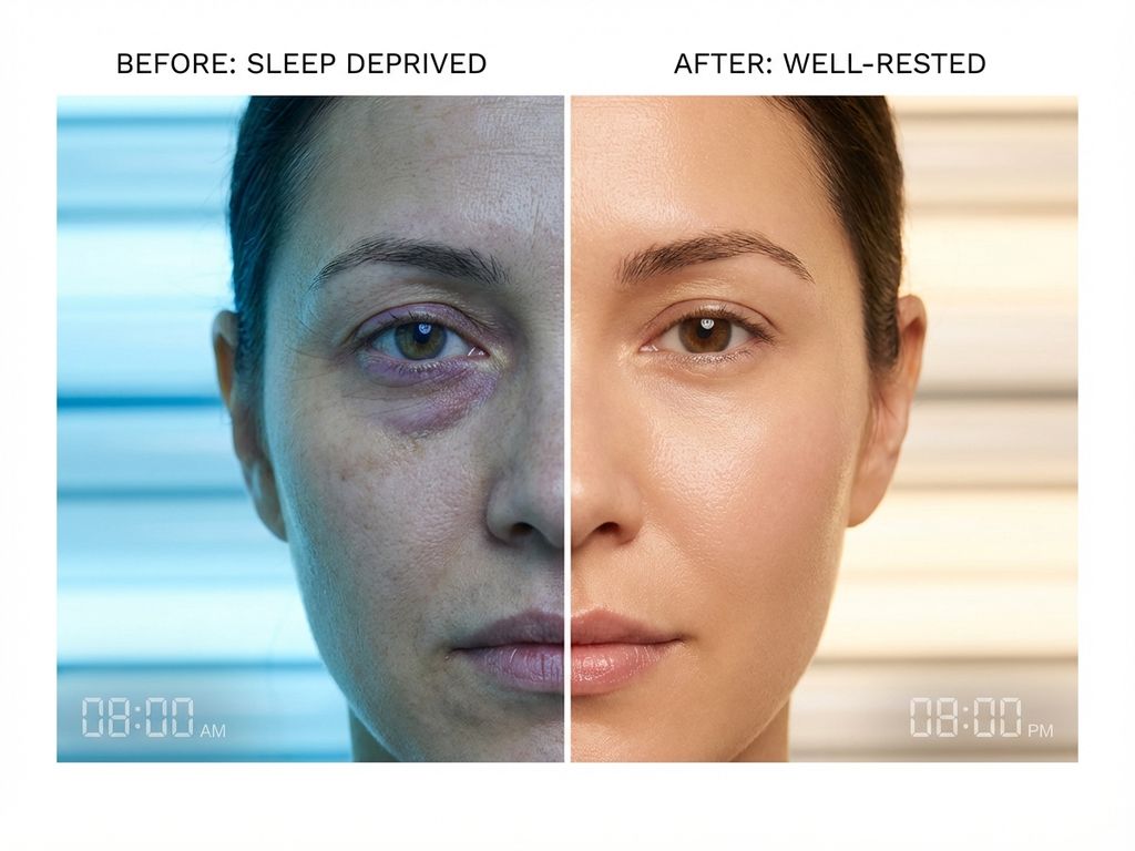 Chronischer Schlafmangel zeigt sich deutlich im Gesicht durch verschiedene Hautveränderungen. Die häufigsten Probleme sind tiefere Falten, besonders um die Augen und den Mund, sowie dunkle Augenringe und Schwellungen. Die Haut wirkt fahl und verliert ihren natürlichen Glanz.